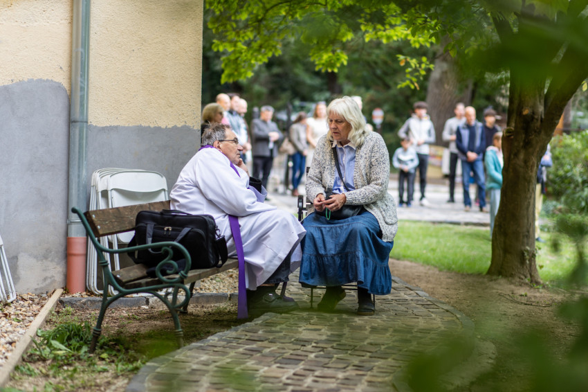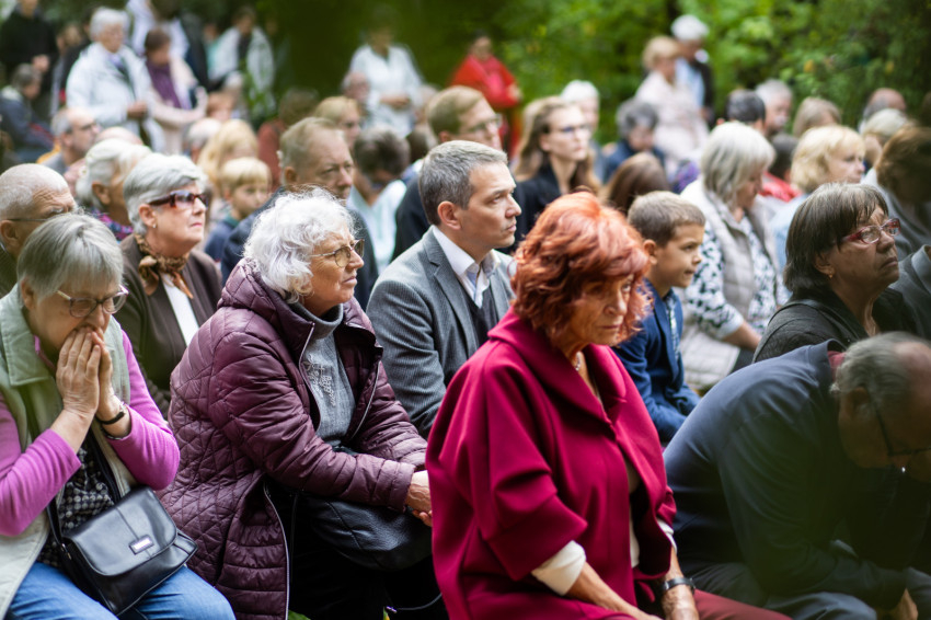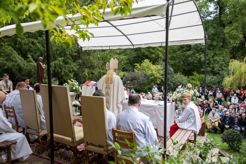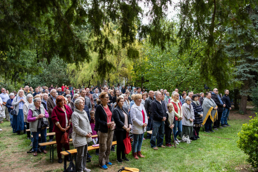 A szentmise kezdetén Harkai Gábor budakeszi plébános köszöntötte a főpásztort és a kertet megtöltő híveket, zarándokokat, külön szeretettel azokat, akik gyalogosan érkeztek az ünnepre.