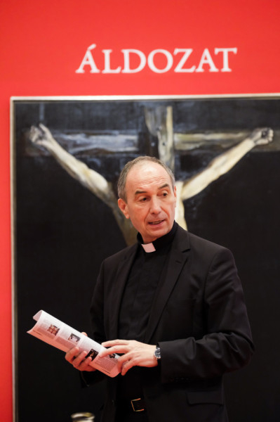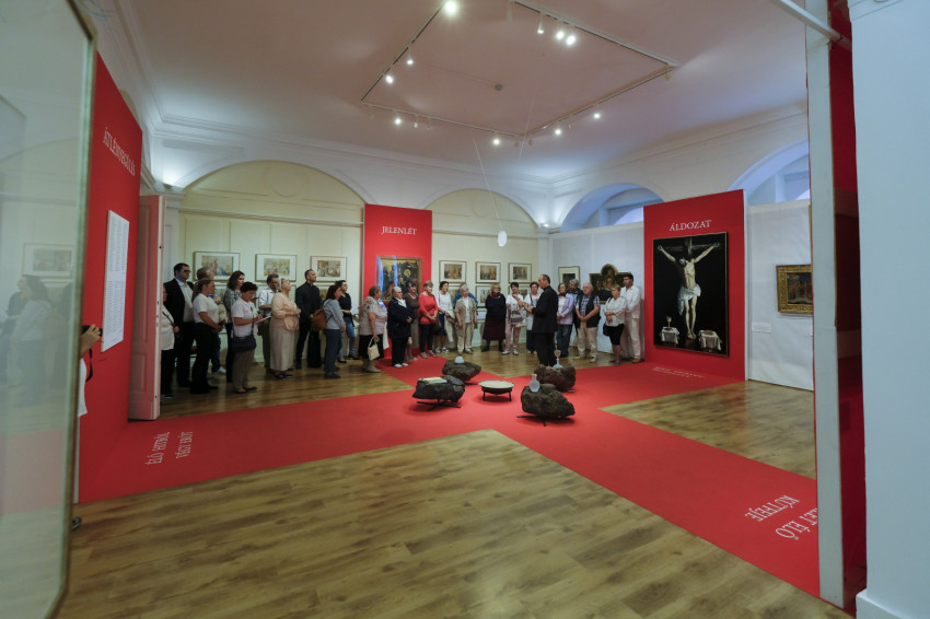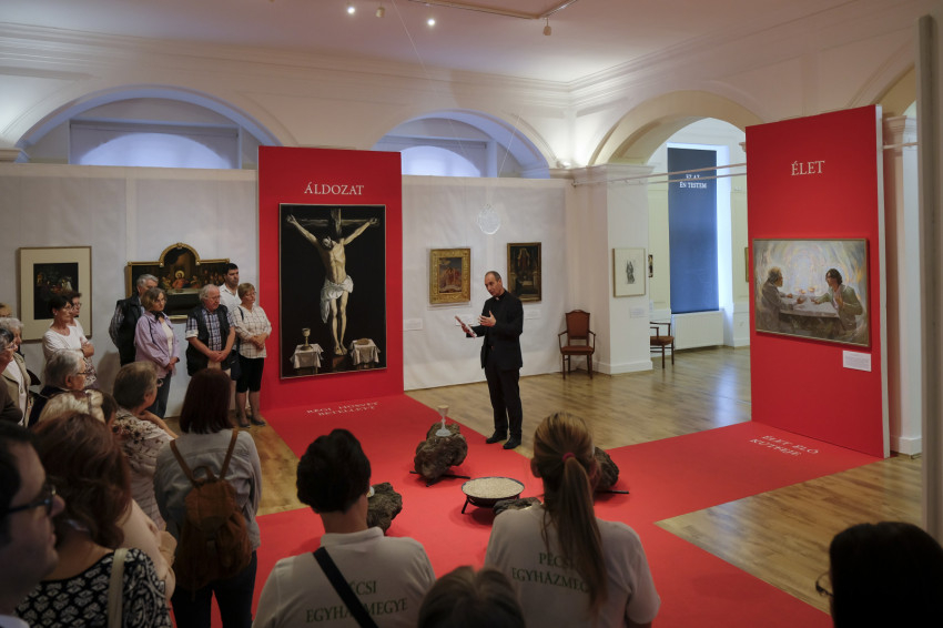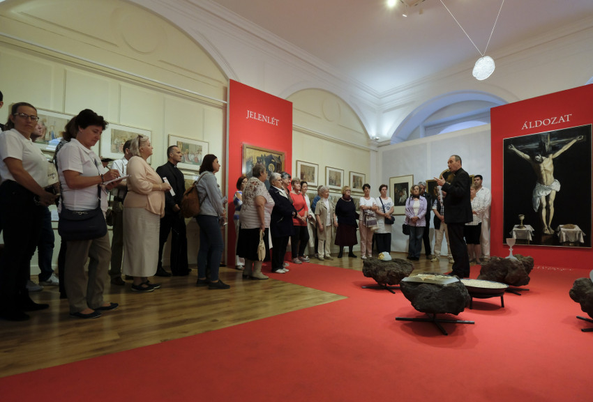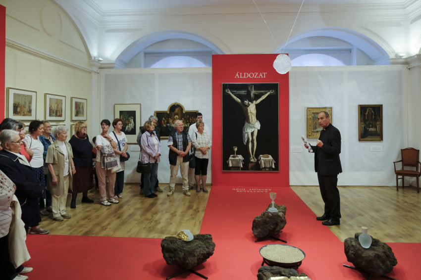 Az Eucharisztiának négy nagy elemét emeli ki a tárlat: a jelenlétet, az áldozatot, az életet és az átlényegülést – mutatott rá a főpásztor. – Jézus áldozata nem egy előre lebeszélt esemény, nem arról van szó, hogy az Atya és Jézus titokban imádság közben összesúgnak, és az Atya azt mondja: „Fiam, csináld végig, hidd el, hogy jó vége lesz!”, hanem ugyanazzal az emberi fájdalommal, bizonytalansággal, pontosabban hittel vállalja a halált Jézus, ahogy mi is hinni igyekszünk Istenben. Feláldozza magát, úgy, hogy a halál reális.