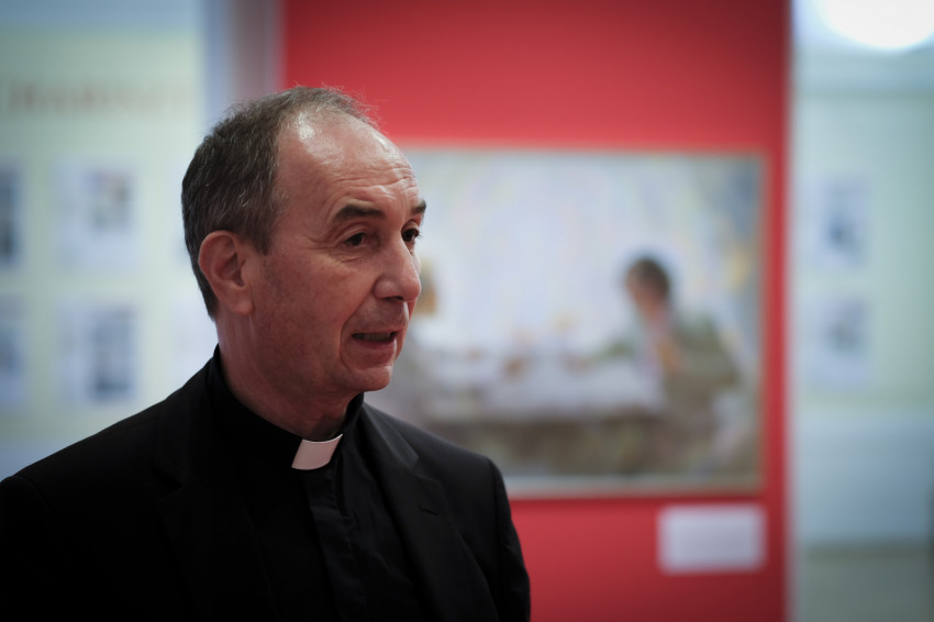 Nem lehet kikerülni a piros szőnyeget, be kell lépni – invitált egyszerre viccesen és komolyan az érsek mindannyiunkat, hogy merjünk bevonódni a kiállításnak és egyben Isten áldozatának a terébe, bármennyire is ódzkodnánk az utóbbitól. Hogy mennyire hitünkhöz tartozik a szemlélés, arra XVI. Benedek pápa gondolatát hozta fel, aki a Katolikus Egyház Katekizmusa Kompendiumának átadásakor arról beszélt, hogy a hitünk több dimenzióban él: amit hiszünk, amit cselekszünk, amit imádkozunk, amit ünneplünk, sőt még egy ötödik dimenziót is hozzátett: hitünk az, amit szemlélünk. Szemlélni pedig nemcsak annyit jelent, hogy nézek valamit, hanem be is vonódom.