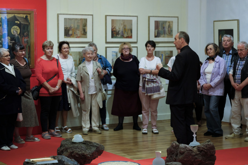 Az esemény előzetes regisztrációhoz volt kötve, ez tette lehetővé, hogy a kiállítás témájához valóban illő, halk, már-már csendes tárlatvezetést tartson a főpásztor a mintegy két tucat szerencsésnek.