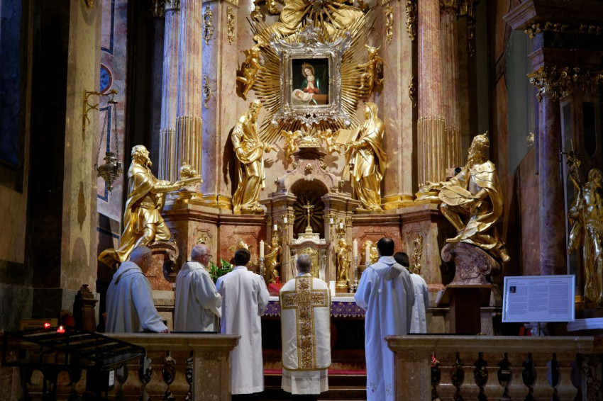 A koszorúzás után a Nagyboldogasszony-székesegyház kegyoltáránál szentmisével zárult a megemlékezés. A legszentebb áldozatot Németh László nagyprépost mutatta be elődje lelki üdvéért. Koncelebrált Reisner Ferenc általános püspöki helynök, a Brenner János Hittudományi Főiskola rektora; Csóka Gáspár OSB és Bedy Imre badacsonytomaji plébános, Bedy Vince testvérének leszármazottja.