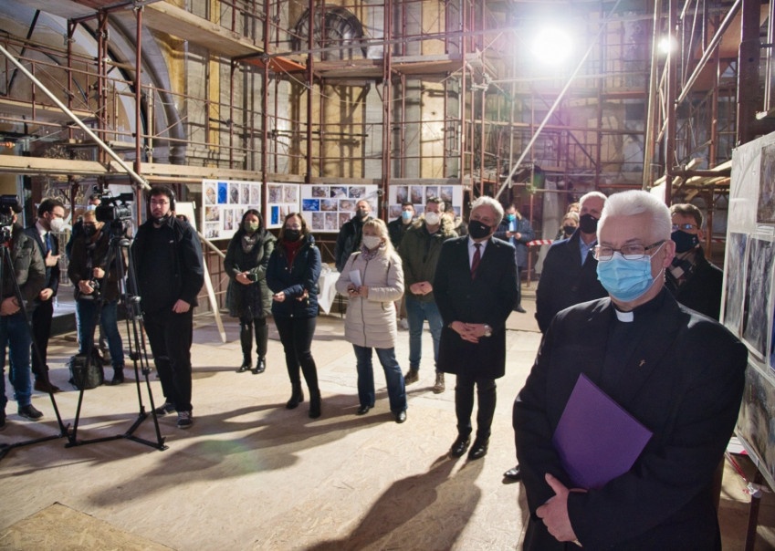 Az aláírást követően Vági Péter építész, a székesegyház felújításának koordinátora és Jeszeniczky Ildikó Munkácsy-díjas festő-restaurátor művész, vezető restaurátor tartottak prezentációt a munkálatokról és idézték fel a felújítás főbb mozzanatait.