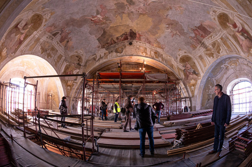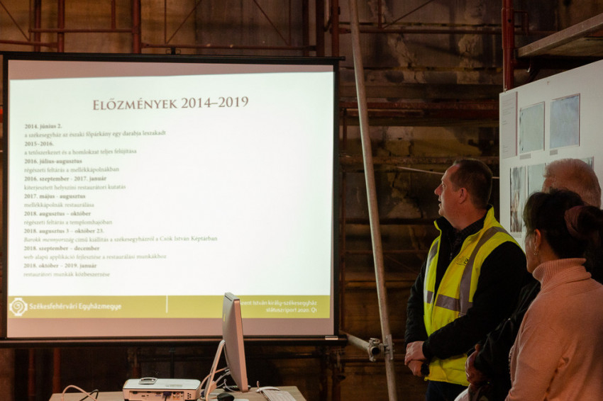 Spányi Antal megyéspüspök folyamatosan nyomon követte a munkálatokat. Most Vági Péter projektkoordinátor, Jeszeniczky Ildikó vezető restaurátor, Bodnár Gyula farestaurátor-művész, valamint a műmárvány és stukkófelületek tisztítását és aranyozását végző szakemberek mutatták be az eredményeket.