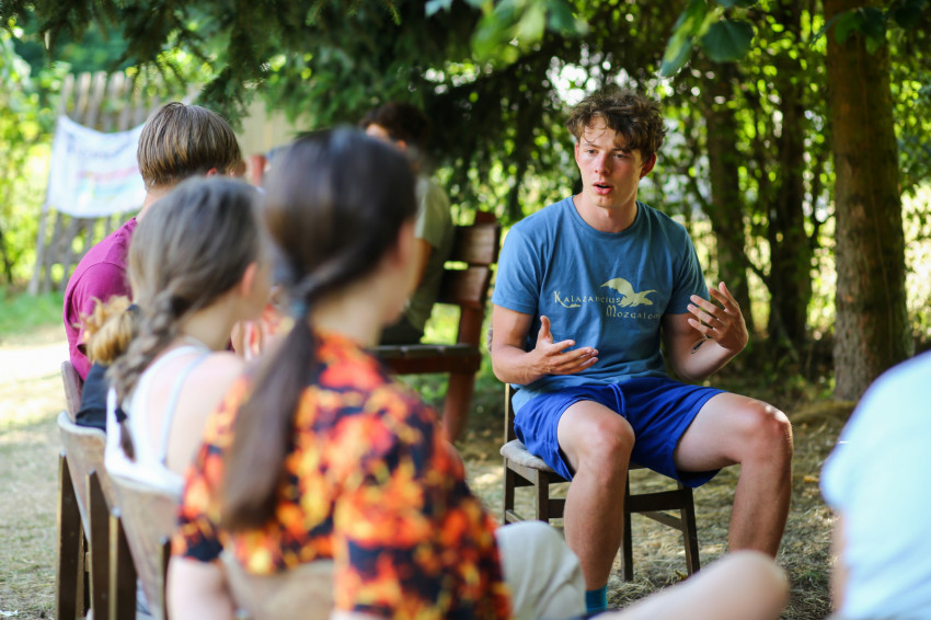 „A cserépváraljai tábor szervezése februárban kezdődött – mondta Ungár Dániel. – Munkacsoportokat alakítottunk, majd online dolgoztunk együtt, programfüzetbe gyűjtöttük össze a teendőket, s amikor augusztus elején felépítettük a tábort, a helyszínen egymás közt begyakoroltuk a programelemeket, amelyek nemcsak játékokról szólnak, hanem komoly témákat érintő csoportbeszélgetésekről is.” Bizalom, önismeret, önértékelés, testbeszéd, barátság, párkapcsolat – ilyen és ehhez hasonló témák is előkerültek a csoportműhelyekben.
