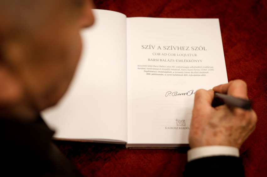 Az ünnepség végén Barsi Balázs meghatottan mondott köszönetet mindenkinek. Egyúttal Jézus szavait idézte: amikor imádkoztok, menjetek be a szobába, és zárkózzatok be. Nem egy hátsó szobára gondol, hiszen Názáretben nem is volt ilyen, hanem „arra a belső szobára, és ott Atyátok lát, néz”. Nagyon mély gondolat ez – hangsúlyozta a teológus pap szerzetes. Kiemelte: