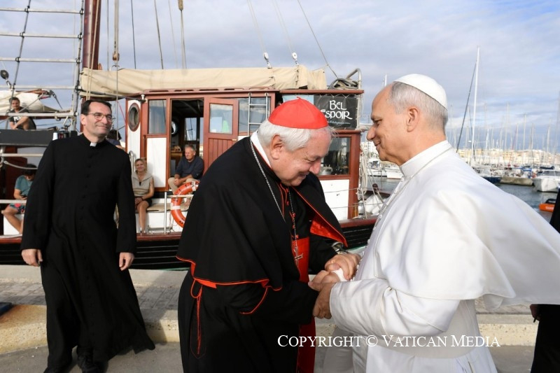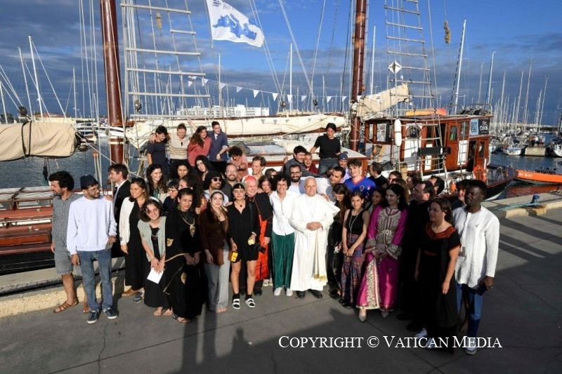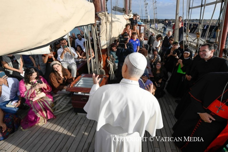 A látogatásra elkísérte a Szentatyát Jean-Marc Aveline marseille-i bíboros is, akinek egyházmegyéjéből elindult a béketeremtő projekt. A pápa spontán beszédében és a fedélzeten tartózkodó fiatalokkal folytatott beszélgetésében arra buzdította őket, hogy
