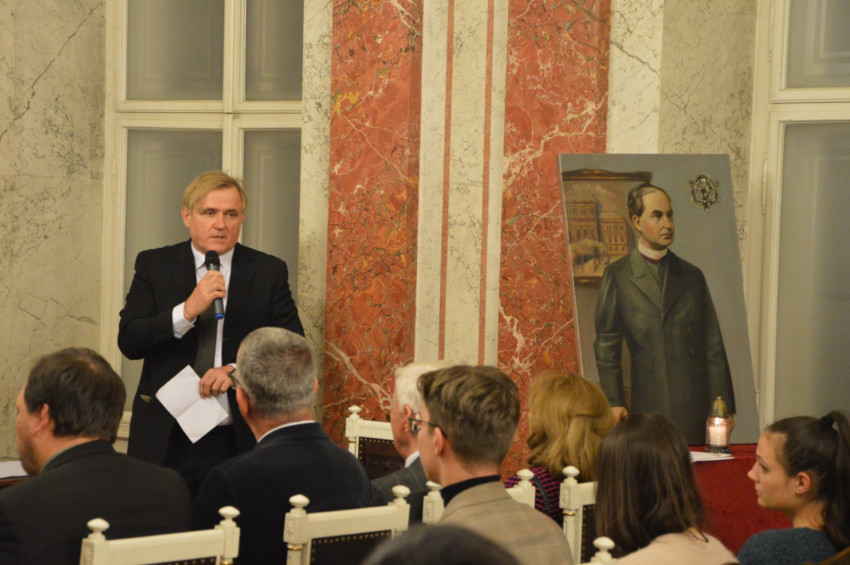 A temetői kegyeleti program után a tudományos megemlékezés 17 órakor kezdődött Fraknói Vilmos életének fontos helyszínén, a Központi Szemináriumban, amelynek 1858–1864 között növendéke volt.