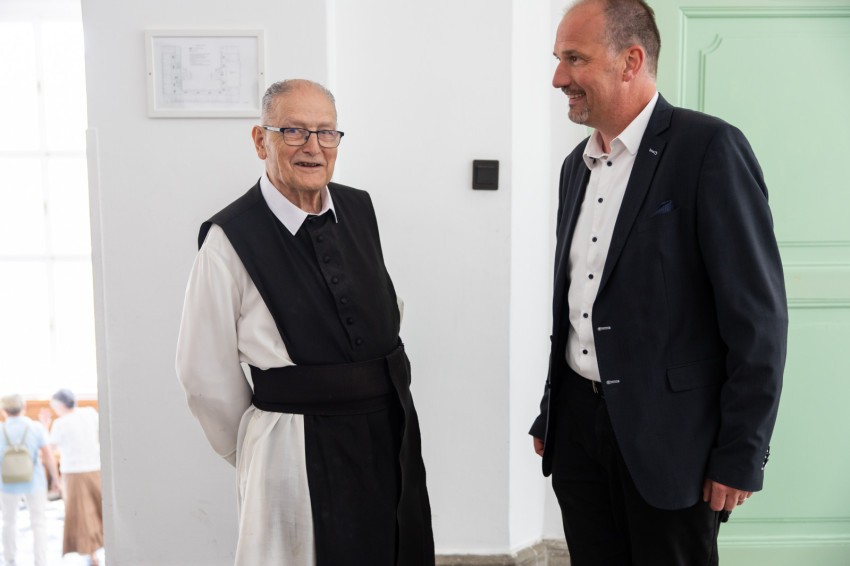 Halász Nivárd OCist rendtörténeti bevezetőjében arra emlékeztetett, hogy hetven éve alakult meg a dallasi monostor. Rábay Kristóf még a virágzó zirci apátságban tette le a fogadalmát, míg Donát atya titokban vált ciszterci szerzetessé. Kristóf atya Freiburgban, Donát atya Rómában tanult teológiát. Donát atya emellett több mint ötven éve szolgál a dallasi magyarok lelkipásztoraként.