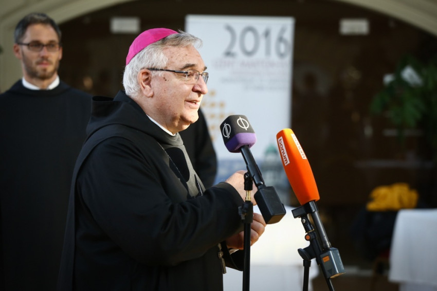 A sajtótájékoztató elején Várszegi Asztrik pannonhalmi főapát Kormos Gyula, a Szent Márton-év kommunikációs vezetője kérdésére válaszolva Szent Mártonról elmondta, hogy istenkereső, keresztény ember volt, aki korának társadalmi kihívásaira próbált meg válaszokat adni. Legégetőbben az embertársak szeretete foglalkoztatta, amely jól kifejeződik abban a ma már szinte toposznak számító képben, ahogyan megosztja köpenyét a koldussal. Szent Márton azonban, ahogyan Várszegi Asztrik rámutatott, nemcsak a szegények iránt mutatott érzékenységet, hanem az egyházon belüli békétlenségeket is a szívén viselte, így mint a béke követe próbálta a kiengesztelődés felé vezetni az egyházat, hogy az teljesíteni tudja saját hivatását. A pannonhalmi főapát Márton alakjában egy olyan csodálatra méltó szentet állított a jelenlévők elé, aki szerzetesként és püspökként is a hívek szolgálatában állt.