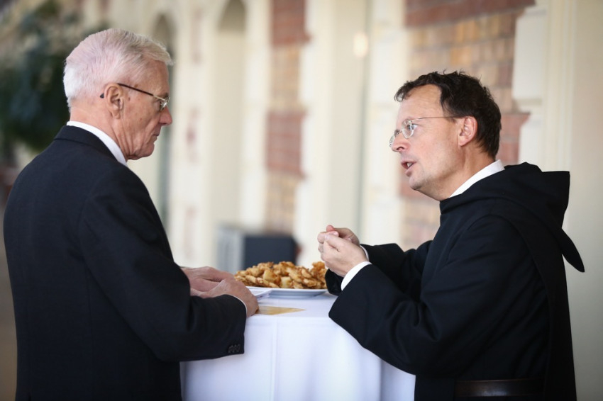 Dejcsics Konrád OSB, a Pannonhalmi Főapátság kulturális igazgatója a közösség létrejöttéről szólt. Rövid köszöntőjében az emlékév mottójához kapcsolódva a találkozás fontosságára irányította a figyelmet. A programsorozat különböző találkozási lehetőségekre hív, legyen az iskolák közötti sportverseny, ételosztás a pannonhalmi szegények körében, tudományos konferencia az ELTE BTK-val karöltve vagy a Budapesti Fesztiválzenekar koncertje.