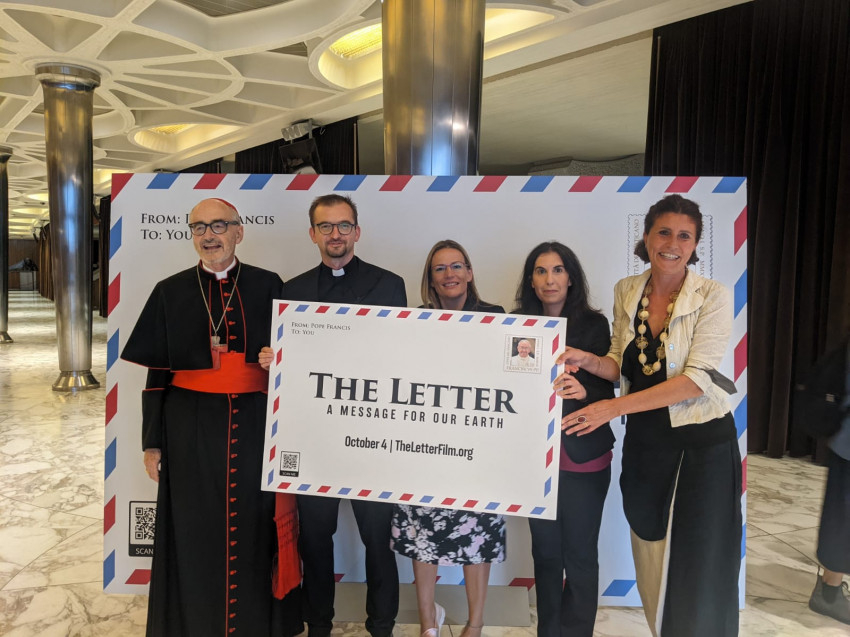 (A kiemelt fotón balról jobbra: Michael Cerny bíboros, Nevelős Gábor SJ, Bánlaki Zsanett, valamint Cecilia Dall’Oglio és Elena Attanasi, a Laudato Si’ Mozgalom európai programjának koordinátorai.)