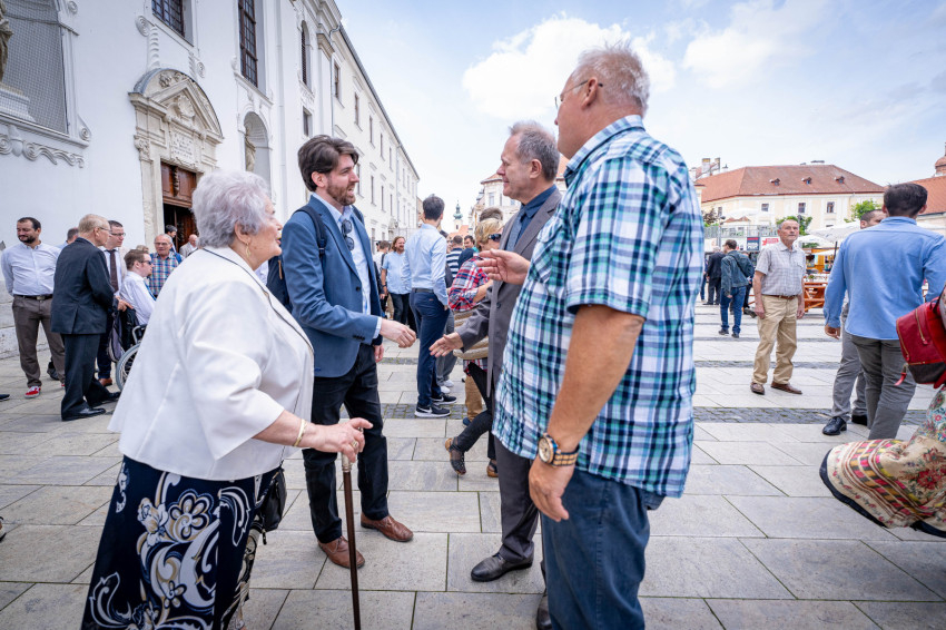 Az alma materben feledhetetlen, lélekemelő közösségi élményben volt részünk. Ismét tudatosodott bennem, hogy életre szóló külön kegyelem számomra, hogy Nádasi Alfonz atya anno tanítványává fogadott, hogy Bánhegyi Jób bácsi volt a magyartanárom, hogy Jáki Teodóz atyának, a csángók bencés vándorapostolának 15 éven át kísérője, előadótársa lehettem, mint egy posztgraduális továbbképzésen. A Korzenszky Richárd emeritus tihanyi perjel atya által is kedvelt Kosztolányi-versimádságból áldáskívánó sorokat idézek: „Légy áldott, régi hely, légy áldott, régi ház (...) te szívet nyitó, te lelket építő.” A győri öregdiák-találkozó hálaadó ünneppé vált. Olyan szeretetet sugárzó, szellemi, lelki erővel töltekeztünk, amelyet lélekellátó élményként tarthatok számon. Dignum et justum est – méltó és igazságos: „Hála legyen!”