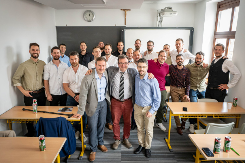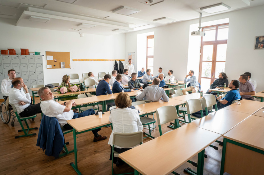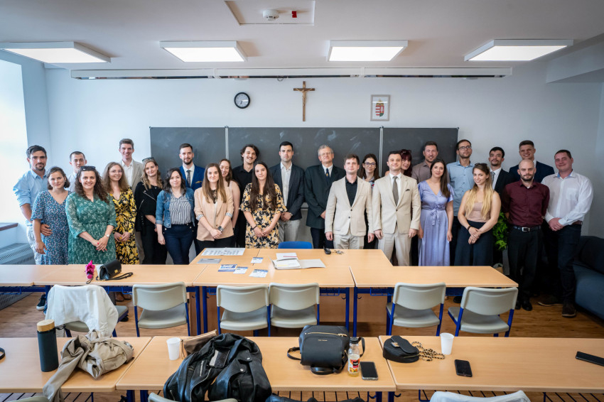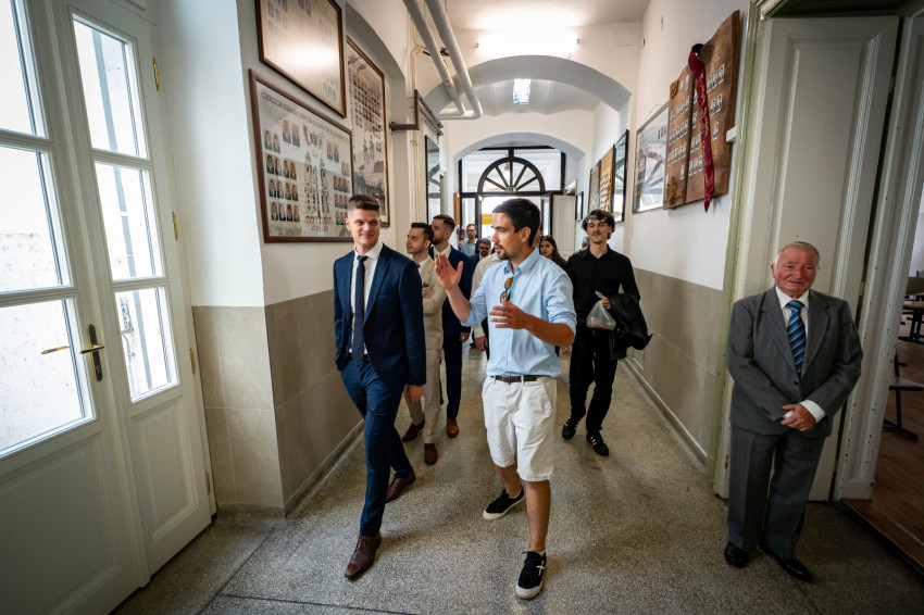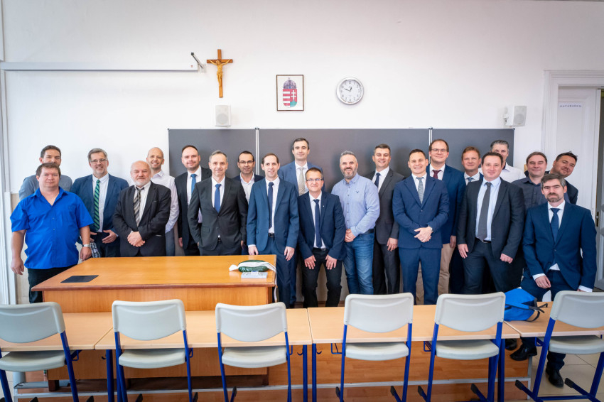 A bencés templomból a gimnáziumba átvonulva, a díszteremben folytatódott az ünneplés. Nyitányként a Himnuszt énekeltük. Sárai-Szabó Kelemen győri perjel és Tóth Konstantin igazgató köszöntötte a jelenlévőket. Lényeglátó áttekintést adtak iskolánk küzdelmes történetéről, jelenlegi eredményeiről, az öregdiákok részére szervezett sokféle programról. (Részletes iskolatörténeti ismertetés olvasható tőlük a Czuczor Gergely Bencés Gimnázium és Kollégium 2022/2023-as, elegáns kivitelű, képes-szöveges évkönyvében.) A 2026-ban már négyszáz éves győri oktatási intézménynek, hathatós kormánytámogatással, nemcsak az épületei újulnak meg, hanem a korigény figyelembevételével bennük az oktatás, nevelés is megújul – az óvodától az érettségiig. Mintegy 1200 diák tartozik a bencések által irányított győri bencés családhoz.
