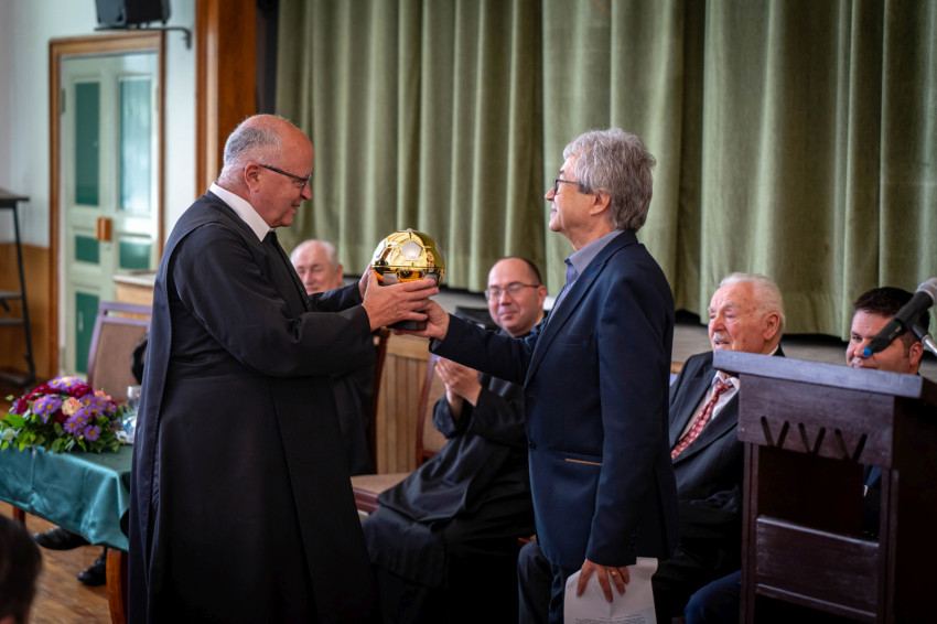 (Kondás Sándor az aranylabdát Tóth Konstantin igazgató úrnak adta át, arra kérve, hogy továbbítsa majd a szeptemberben kezdő, legifjabb „czuczorosok” osztályfőnökének.)