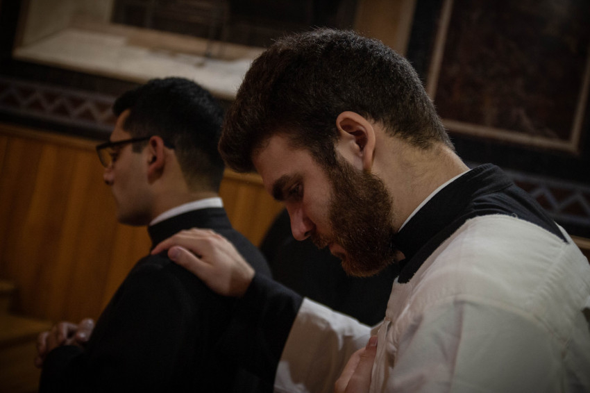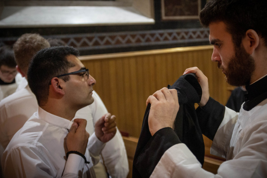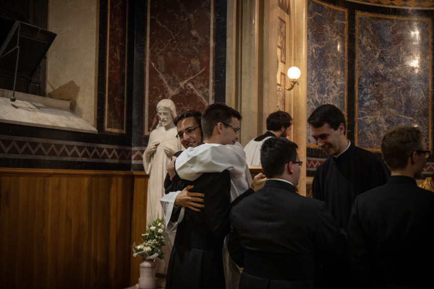 A homília után megáldotta a reverendákat, majd előbb a szeminárium vezetősége, azután a már beöltözöttek közössége békecsókot váltott a frissen beöltözöttekkel, ezzel is jelezve a befogadást és az egységet.