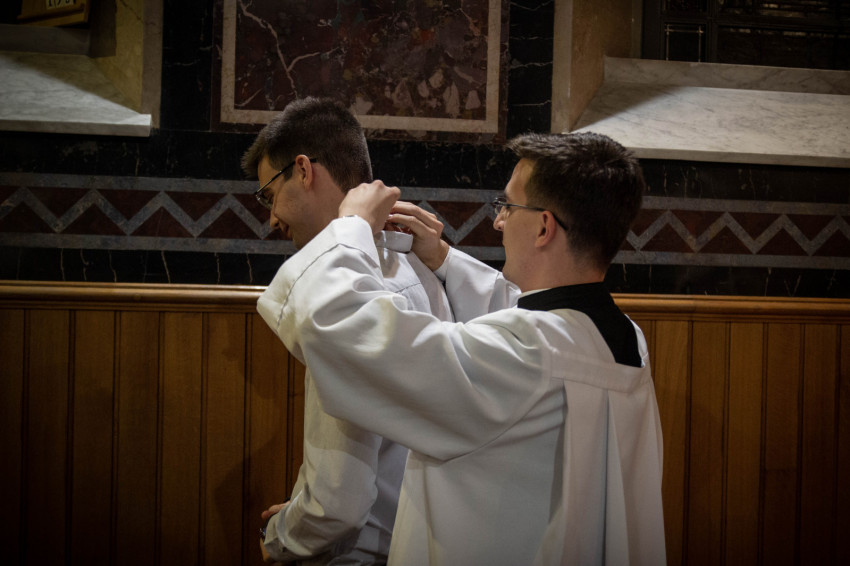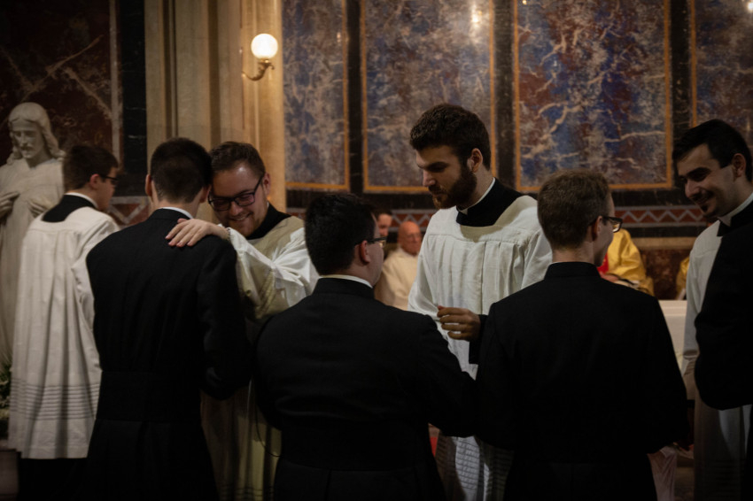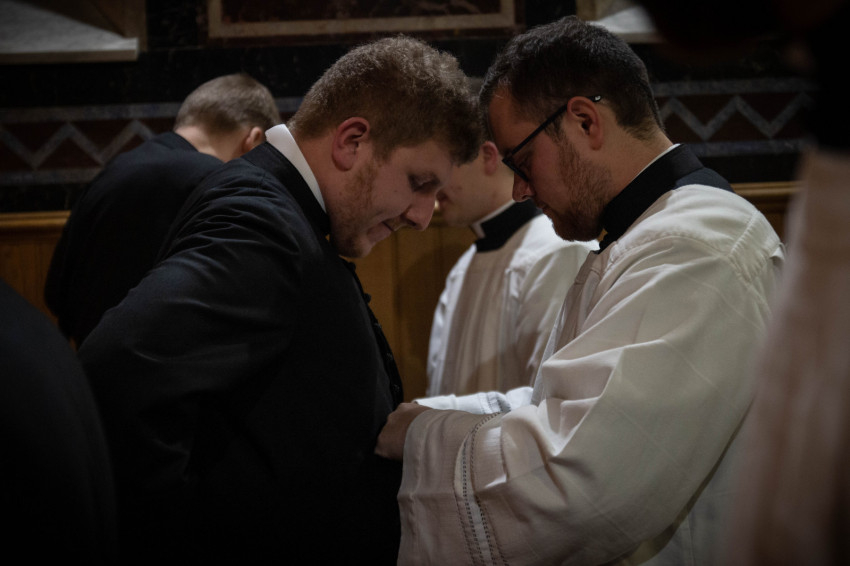 Az este hat órai szentmisében a szeminárium kápolnájában hét bentlakó öltötte magára a reverendát. Krisztus Király ünnepének előestéjén Lobmayer Benedek váci egyházmegyés, Majláth Tihamér, Pongrácz Benedek, Rátkai István és Vörös Dániel szombathelyi egyházmegyés, Riesz Benedek esztergom-budapesti főegyházmegyés, Szalai Tamás székesfehérvári egyházmegyés papnövendékek öltötték magukra a szolgálat ruháját.