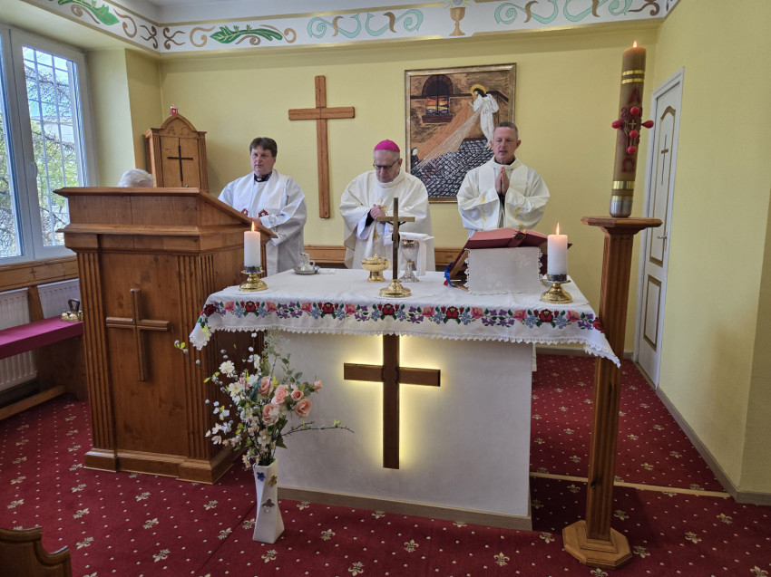 Berta Tibor homíliájában kiemelte: a szentmise a húsvétnyolcad, az úgynevezett fényes hét péntekén zajlik, amikor az Egyház nyolc napon át egyetlen nagy ünnepként hirdeti Jézus Krisztus húsvétvasárnapi feltámadását.