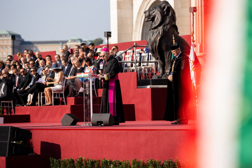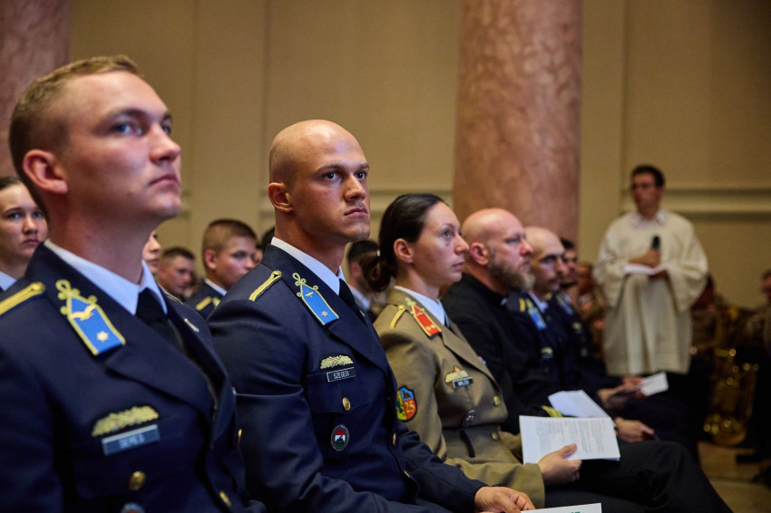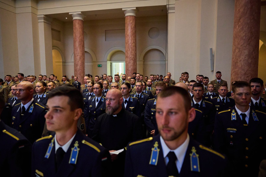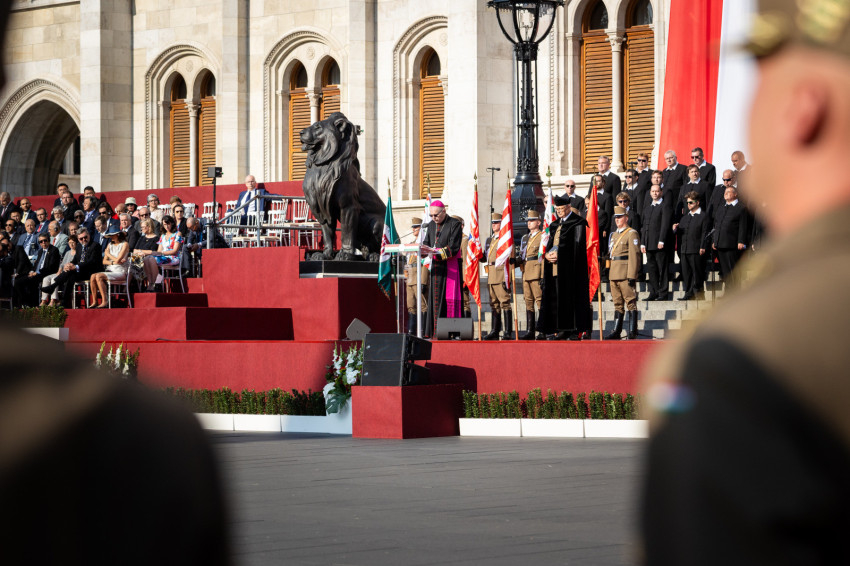 „Kedves hadnagy urak és hölgyek, önök Magyarország ifjú lovagjai. Azok, akiknek, ha kell, az életük árán is meg kell védeniük ezt a hazát. Amikor a hazáról van szó, akkor mindig arra gondoljunk, hogy ott szüleink, testvéreink, kedveseink, barátaink, bajtársaink vannak – a haza belőlünk épül fel, és Isten országa is belőlünk és általunk növekszik” – fogalmazott a tábori püspök.