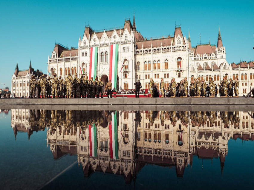 Az ünnepélyes tisztavatáson százhatvanhat honvéd tett esküt. A honvédelmi miniszter tavalyi kezdeményezésére, régi hagyományt felélesztve, a nemzet főterén felsorakozott hivatásos, szerződéses és tartalékos katonákért Berta Tibor dandártábornok, katolikus tábori püspök és Jákob János dandártábornok, protestáns tábori püspök is fohászt mondott.