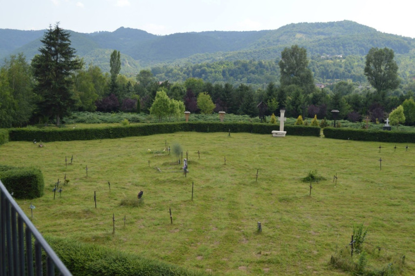 Délután a zarándokok felkeresték a „szegények temetőjét”, azt a város peremén fekvő, Ukrajnától csak a Tisza által elválasztott területet, amely 1997-ig működött temetőként, azóta pedig a börtönmúzeumhoz tartozó emlékhely. Itt temették el a város szegényeit és árváit, az elmegyógyintézet halottait, valamint a börtönben elhunyt rabokat. Itt nyugszik valahol, jeltelen sírban, a máramarosszigeti börtönben 1954. szeptember 14-én elhunyt Boga Alajos is, aki általános helynökként Áron püspök letartóztatása után egy ideig az egyházmegyét irányította. A görögkatolikus egyház által állított kereszt az ő emlékezetét is őrzi. A zarándokcsoport itt és a szabadtéri oltárnál is imádkozott az áldozatokért és Áron püspök boldoggá avatásáért.
