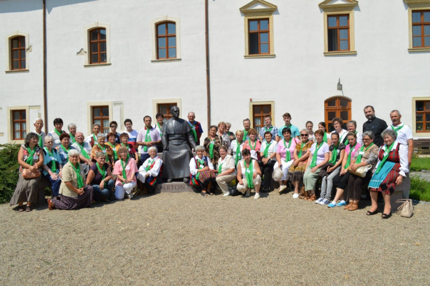 A szülőház helyén álló épület megtekintése után a csoport felkereste a helyi templomot, ahol 1896. augusztus 31-én megkeresztelték Márton Áront. Csiby László plébános megmutatta a szülőfalunak adott püspöki ajándékokat: az ezüst kelyhet és paténát.