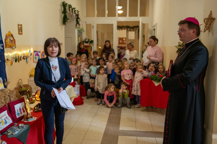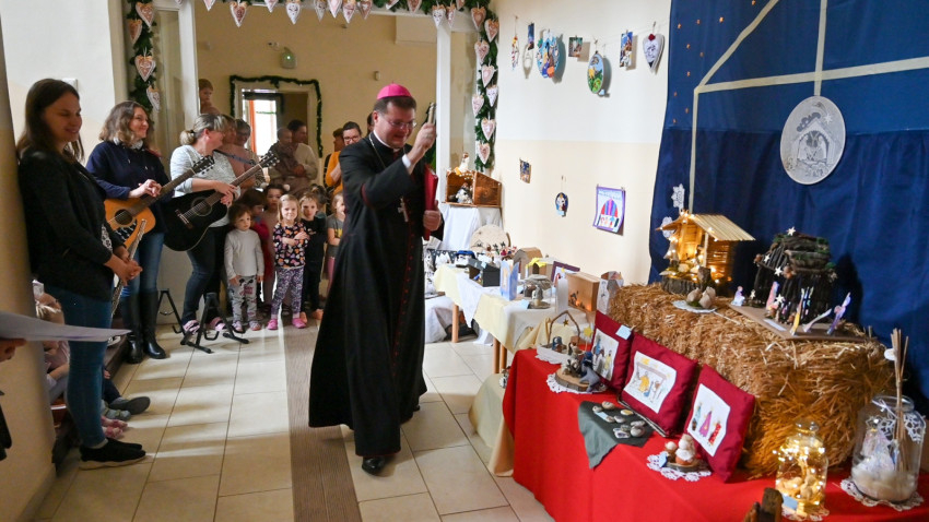Nyolcszáz éve, hogy Assisi Szent Ferenc először jelenítette meg Jézus születését Greccióban. Azóta szokás, hogy betlehemek készítésével is készülnek a keresztények az adventi időben a Megváltó megjelenésére. Fekete Szabolcs Benedek segédpüspök áldotta meg az alkotásokat. A gyermekek, nevelőik és a megjelent szülők énekekkel fejezték ki szeretetüket Isten felé.