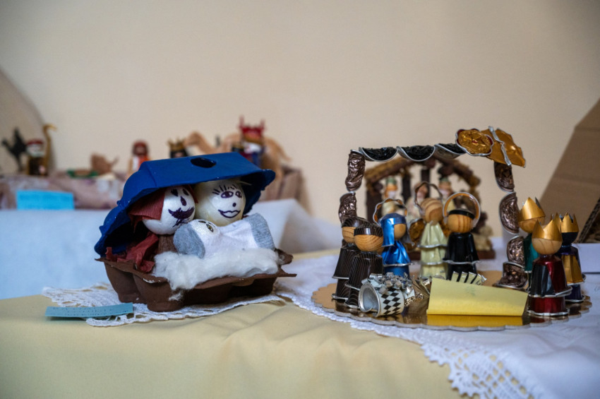 Többek között papír, fa, szövet, kő felhasználásával készültek a Jézus születését bemutató alkotások. Mindegyiket az óvodába járó gyermekek és családjaik készítették otthon, együtt dolgozva. A közös munka, ahogy a tárlat is, már Jézus születésére irányítja a gyerekek és szüleik figyelmét.