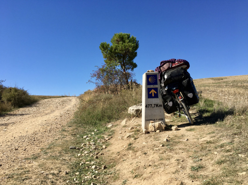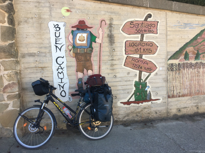 Az El Caminón zömében ugyanazon az úton haladok, mint a gyalogos zarándokok, pontosan azért, hogy velük lehessek. Ez nem mindig könnyű. Amikor sziklákon vezetett az út, volt, hogy hárman cipeltük a biciklimet.