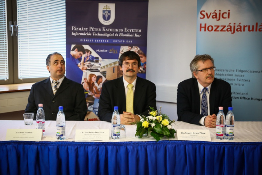 Zarándy Ákos, a Pázmány Péter Katolikus Egyetem docense mutatta be a projektben részt vevő intézeteket. Mint elmondta, a Svájci–Magyar Együttműködési Program keretében a Pázmány Péter Katolikus Egyetem által vezetett négytagú konzorcium (amelynek tagjai a PPKE Információs Technológiai és Bionikai Kara, a Szegedi Tudományegyetem Orvosi Biológiai Intézete, a Femtonics Kft., illetve a bázeli Friedrich Miescher Intézet) 2010 óta folytatott nemzetközi kutatásokat látássérülteket szolgáló bionikus és genetikus eszközök fejlesztésére.