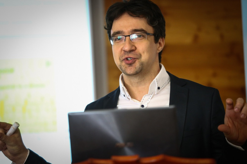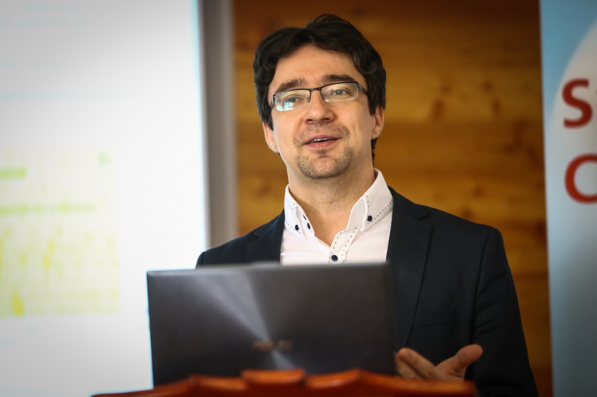 Rózsa Balázs, a Magyar Tudományos Akadémia Kísérleti Orvostudományi Intézetének csoportvezetője, a PPKE laborvezetője, illetve a Femtonics Kft. ügyvezetője és fejlesztési igazgatója a 3D 2-foton-pásztázó lézermikroszkópot mutatta be előadásában (Idegsejtek Ca2+-szignalizációs folyamatainak mérése saját fejlesztésű nagy sebességű, véletlen hozzáférésű 3D 2-foton-pásztázó mikroszkóppal).