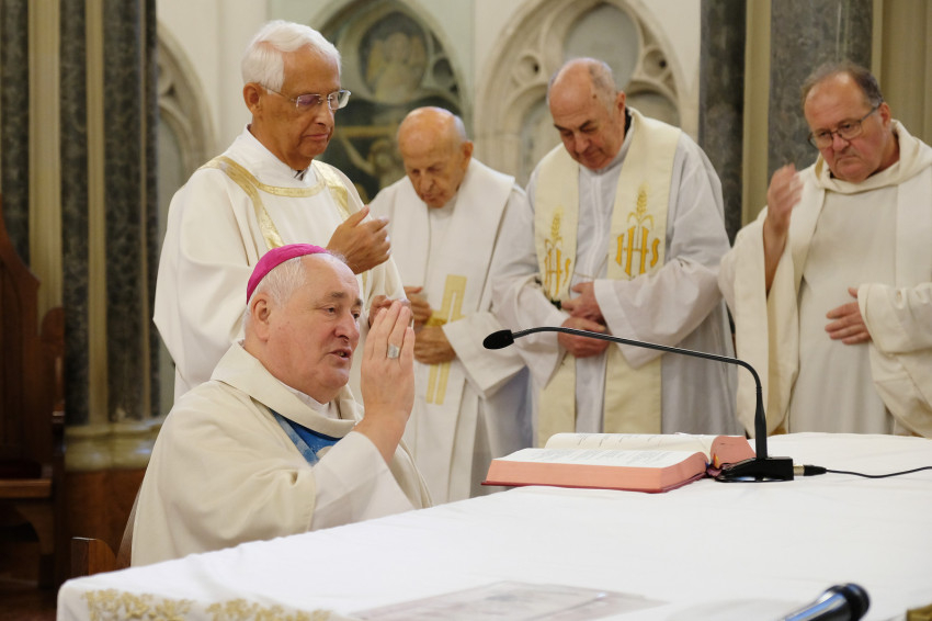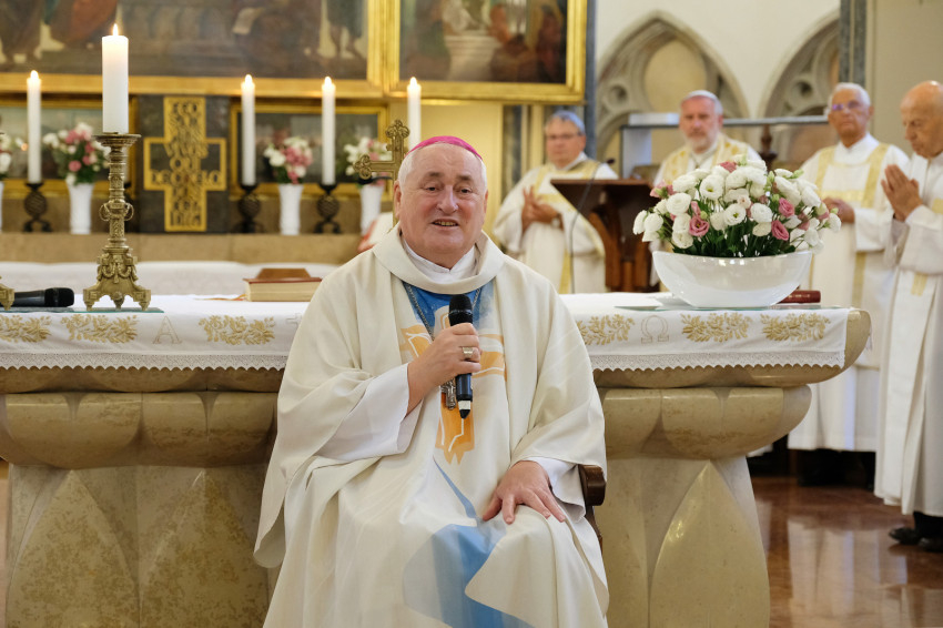 A szentmise kezdetén Osztie Zoltán plébános „legmelegebb, testvéri szeretettel” köszöntötte Bíró László püspököt, akit a hívek hosszasan megtapsoltak.