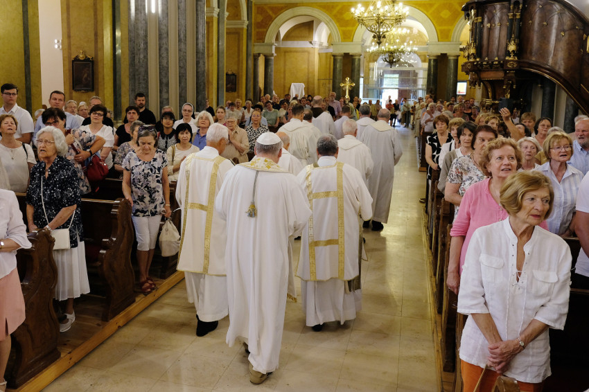 A 975 éves jubileumi templombúcsút többnapos programmal, szentmisékkel, 24 órás szentségimádással ünnepli a plébániaközösség. A mai, Nagyboldogasszony-esti búcsúi szentmise után gyertyás körmenetet tartanak a belvárosban.