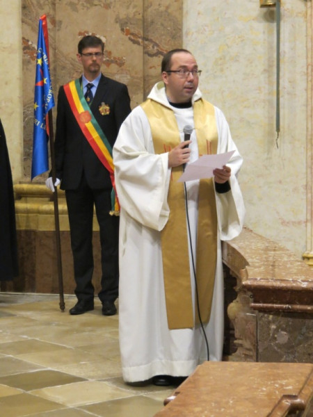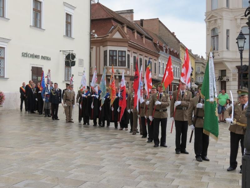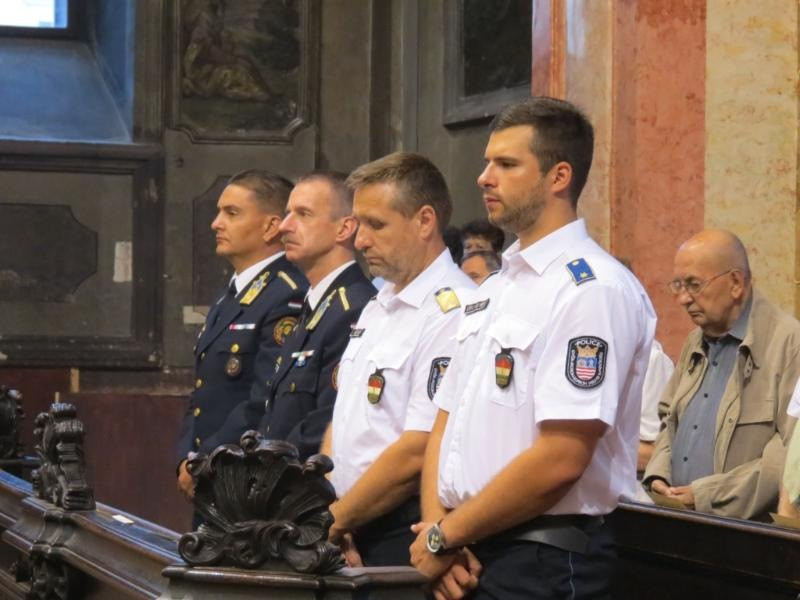 Díszmenetben, történelmi zászlókkal vonultak be a templomba, majd a mellékoltároknál és a főoltárnál is díszőrséget álltak a megjelent hagyományőrző határőrök és honvédek.