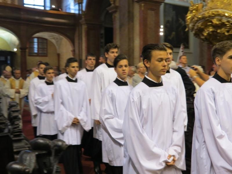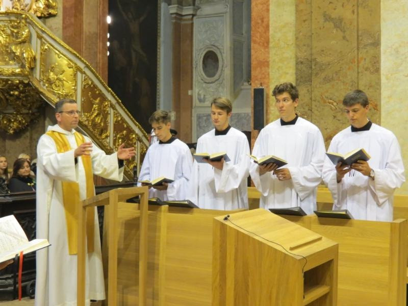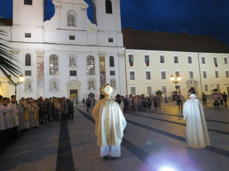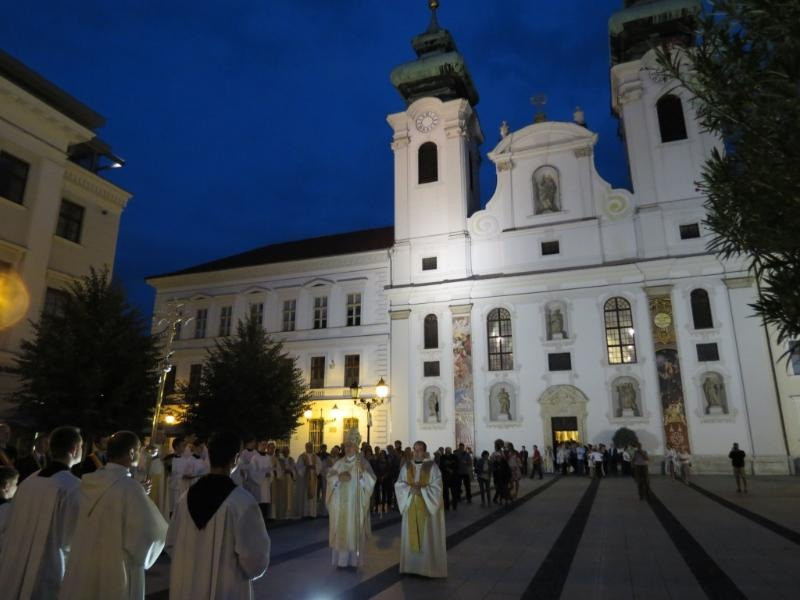 A szentmisén a Czuczor-gimnázium kórusa énekelt Kelemen Áron bencés atya vezényletével. A záróáldás után a loretói litániát énekelve vonultak a hívek a templom előtti téren álló Mária-oszlophoz, ahol együtt imádkoztak a Szűzanyához.