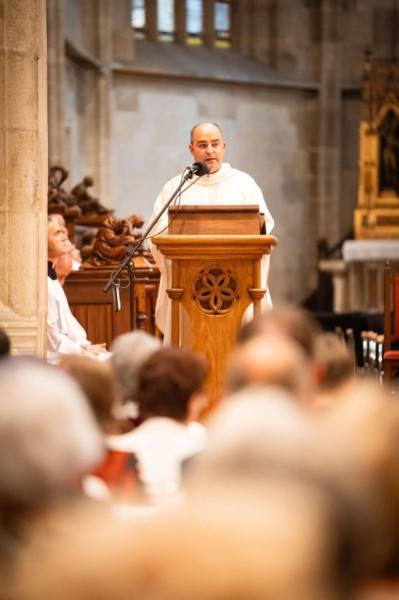 A szentmise szónoka, az augusztustól Nyárádköszvényesen szolgáló Gál Hunor buzdító szavakkal kérte, hogy küzdjünk a bizalmatlanság ellen, s ne adjuk fel. Bizalom nélkül nehéz közösségben gondolkodni, illetve az államalapításnál jóval kisebb célokat is megvalósítani. A keleti végekről a nyugati végekre zarándoklók nevében elmondta, hogy az otthoni székelykapujukra vésett üzenetet hozták: „Megmaradunk”.