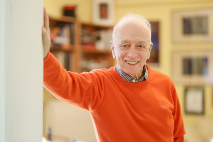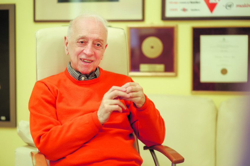 Ádám Ottó egykori – az Erzsébet körút magasára néző – szobájában ültünk le beszélgetni, amely ma is az igazgatói iroda a színház legfelső szintjén, tele relikviákkal, előadásplakátokkal, fényképekkel.
