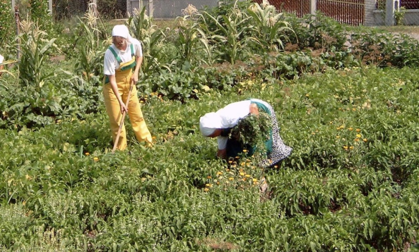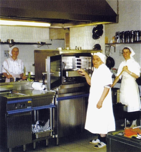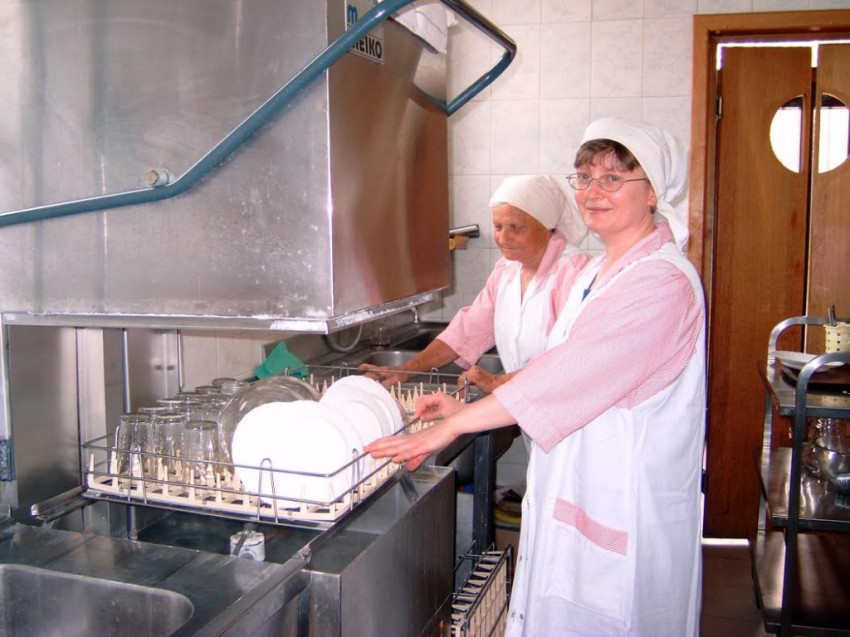 Másik fő elfoglaltságunk a fizikai munka: a Krisztus iránti szeretetből vállalt megélhetésünkhöz szükséges földművelés, a vendéglátás és a vendégházak gondozása. A monostor kertjében és a város másik szélén lévő földünkön zöldséget és gyümölcsöt termelünk. A vendéglátásban sokféle csoportot fogadunk: lelkigyakorlatozóktól kezdve a tanfolyamokon résztvevőkig. Vendégeinkkel nem találkozunk, de mégis egészen velük vagyunk, értük is dolgozunk és imádkozunk.