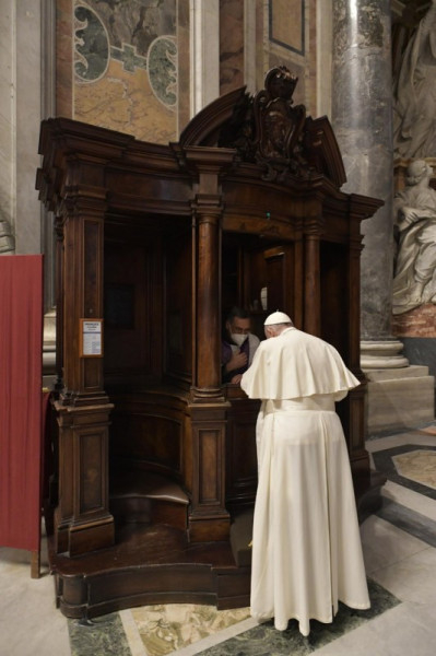 A Miatyánk elmondása után a penitenciáriusok, azaz a négy pápai bazilikában szolgálók és az erre az alkalomra kijelölt papok a gyóntatószékekhez vonultak, ahol a jelenlévők egyénileg, a bűnbánat szentségével élve meggyónhatták bűneiket. Maga Ferenc pápa is a bazilika kereszthajójában található gyóntatószékhez ment és elvégezte szentgyónását. Ezt követően a Szentatya is kiszolgáltatta a bűnbánat szentségét. Az egyéni gyónások idején a bazilikában a csend és a liturgikus zene váltakozott.