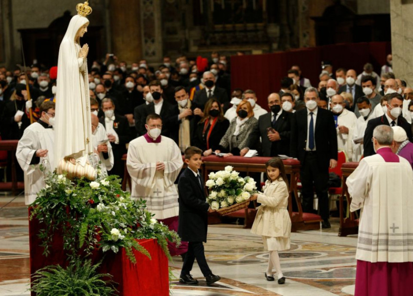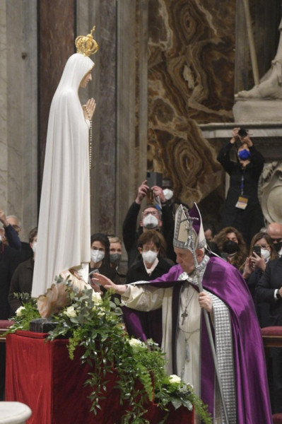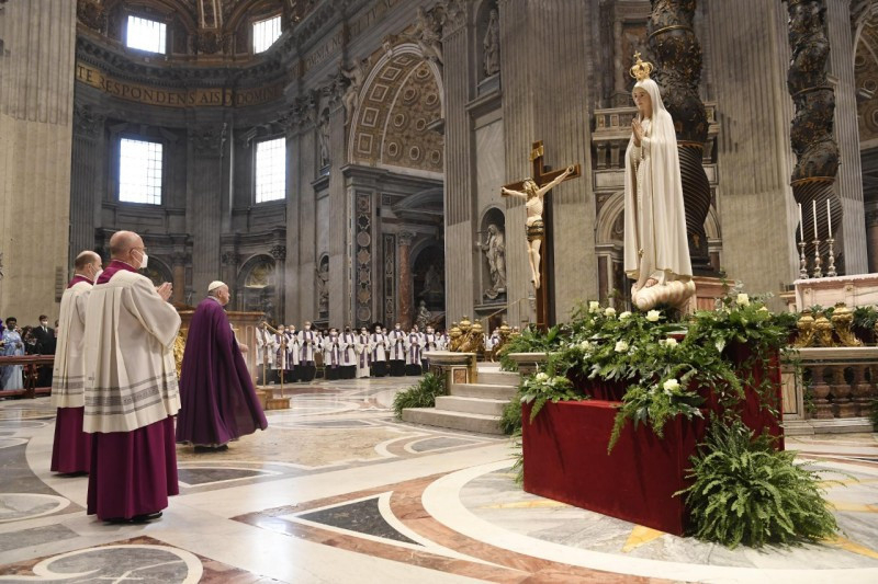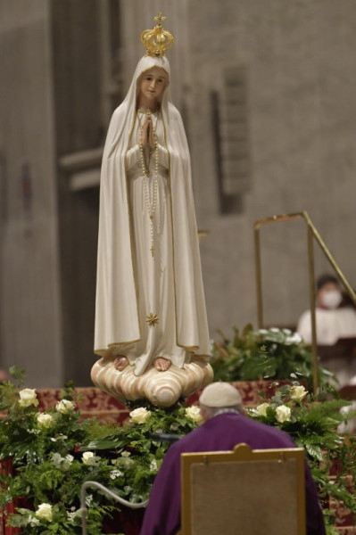 A bűnbánati szertartás záró áldását követően Ferenc pápa a római San Vittorino-kegytemplomból az alkalomra a Szent Péter-bazilikába áthozott Fatimai Szűzanya kegyszobra elé vonult és imádságával felajánlotta Oroszországot és Ukrajnát Mária Szeplőtelen Szívének.