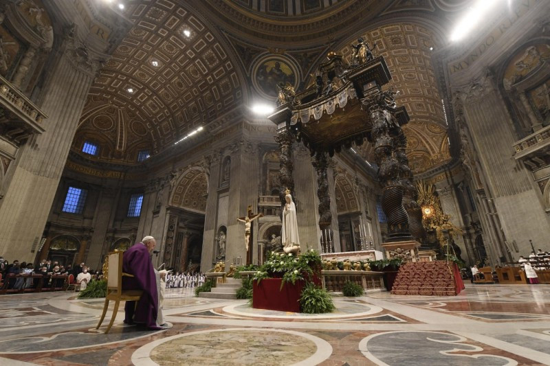 A Ferenc pápa által vezetett bűnbánati szertartásra megtelt a Szent Péter-bazilika, és sokan az épület előtti téren felállított kivetítők segítségével csatlakoztak a liturgikus eseményhez.