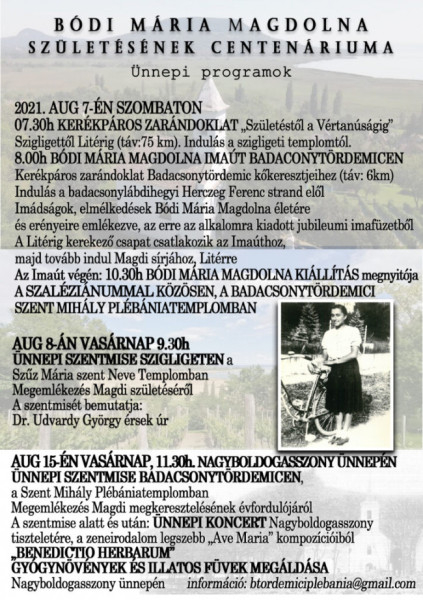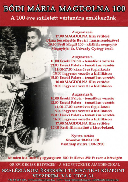 Veszprémben, a Szaléziánum Érsekségi Turisztikai Központban augusztus 6–7–8-án filmvetítésekkel, a vértanú munkáslány életének történetét bemutató kiállítás megnyitójával, tematikus tárlatvezetésekkel, QR-kvízzel várják a látogatókat, a gyermekek számára kézműves-foglalkozásokkal és filmvetítéssel készülnek.
