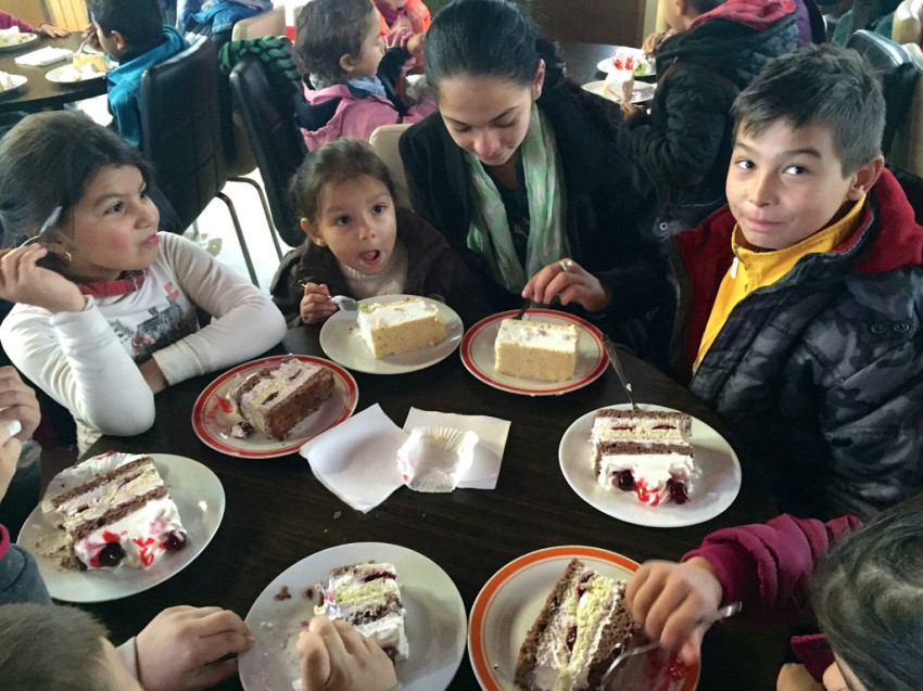 Az egyik volt diákjuk felhívta a figyelmet arra, hogy most is sok gyerek él a vajdahunyadi szegénynegyedben: másnap negyvennégy gyermeket összegyűjtöttek, és elmentek velük cukrászdába. Böjte Csaba tréfásan meséli el, hogyan mentek velük a hóban, latyakban, hogyan érkeztek meg, hogyan siettek ki az emberek a cukrászdából a sok szegény kisgyermek láttán, és így hogyan jutott hely mindannyiuknak. Érdemes volt elmenni, nagy öröm volt velük lenni. Jó dolog jónak lenni. Jó dolog a szeretet útján járni. A világot valóban csak az önzetlen szeretet tudja jóvá tenni – állapította meg. Hangsúlyozta, hogy ezzel ellentétben a méricskélő, számítgató kapcsolat az élet minden területén – így a menekültekkel kapcsolatban is – olyan, mint egy érdekházasság, nem lesz belőle tiszta szerelem.