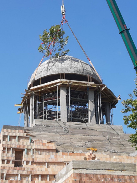 Teljes magasságáig elkészítették a falazatot, a zárófödémet és a boltozatokat, a munkálatok egyik leglátványosabb részeként pedig szeptember 18-án a templomhajó közbenső részét fedő kupola is a helyére került.