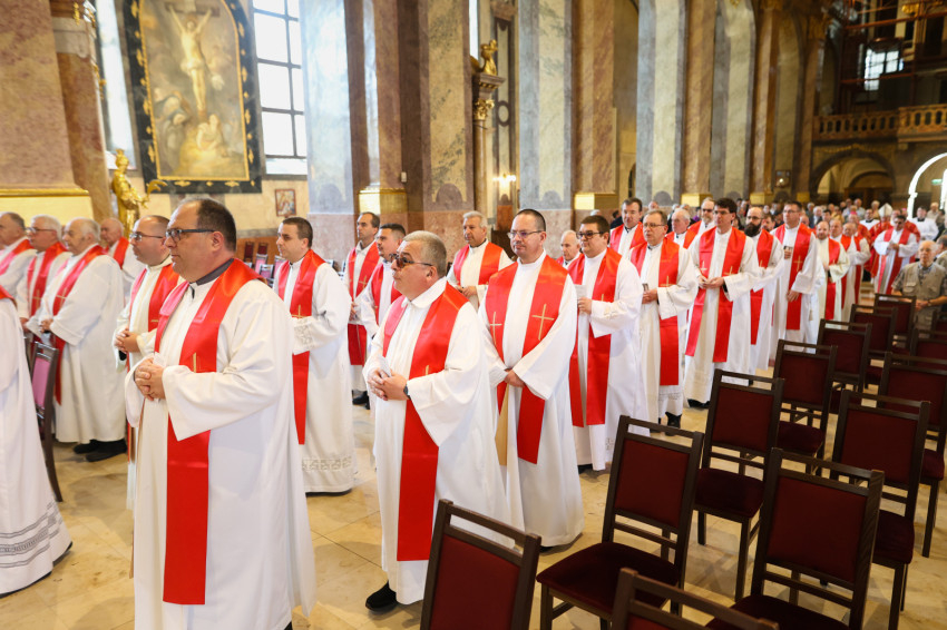 Veres András kiemelte: a vértanú Apor Vilmos még a halálos ágyán is az egyházmegye papságáért imádkozott. „Kérjük, járjon közben értünk, hogy lelkipásztori szolgálatunk lélekben és elkötelezettségben is megújuljon! Egyúttal azt kívánom, hogy a mostani ünnep mélyítse el a vértanú iránti tiszteletünket, s hogy az általa képviselt értékek vezessenek minket a mindennapi szolgálatban!”