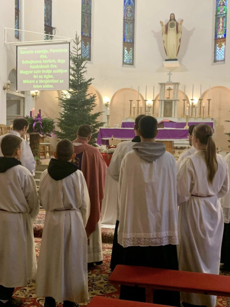 Advent harmadik vasárnapján a délelőtti szentmisében helyeztük ki tiszteletre Boldog János ereklyéjét. Ő a maga derűjével és gyakran ábrázolt mosolyával valóban példakép lehet az öröm vasárnapján. Az ünnepi szentmise előtt hittanosaink meggyújtották a harmadik adventi gyertyát, majd az asszisztencia a templom főkapuján keresztül vonult be.