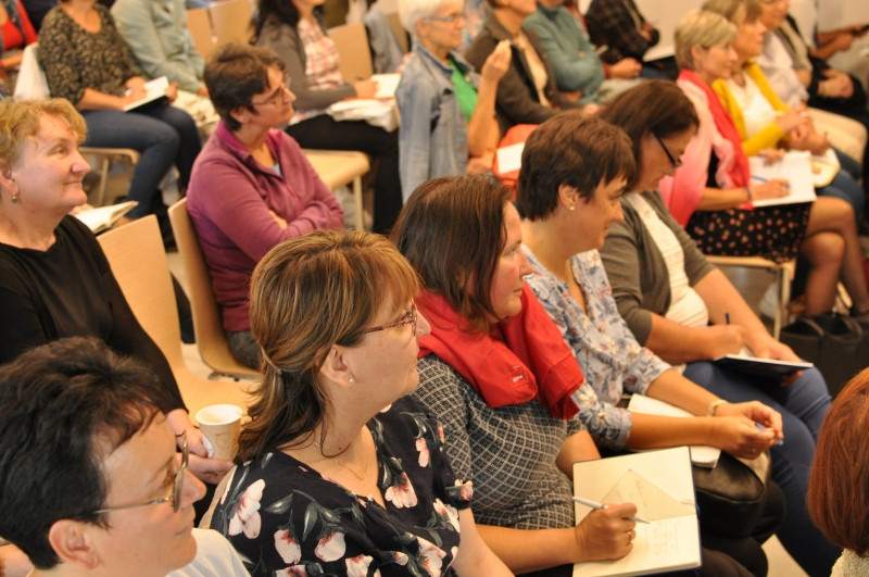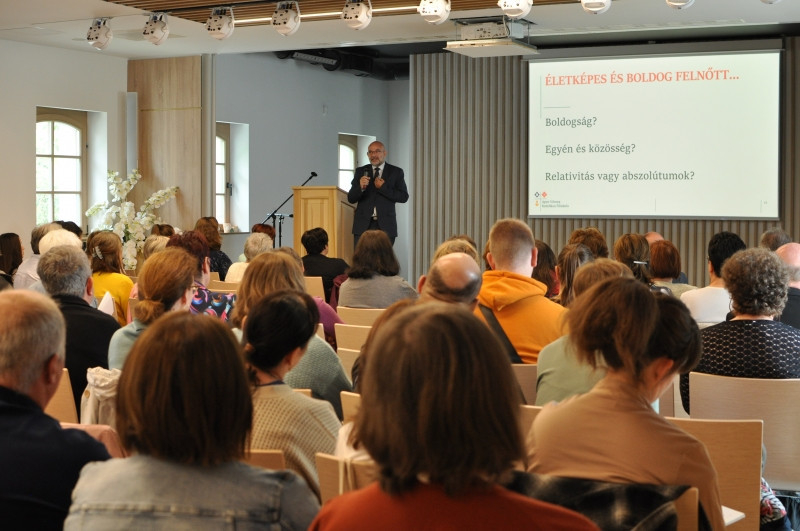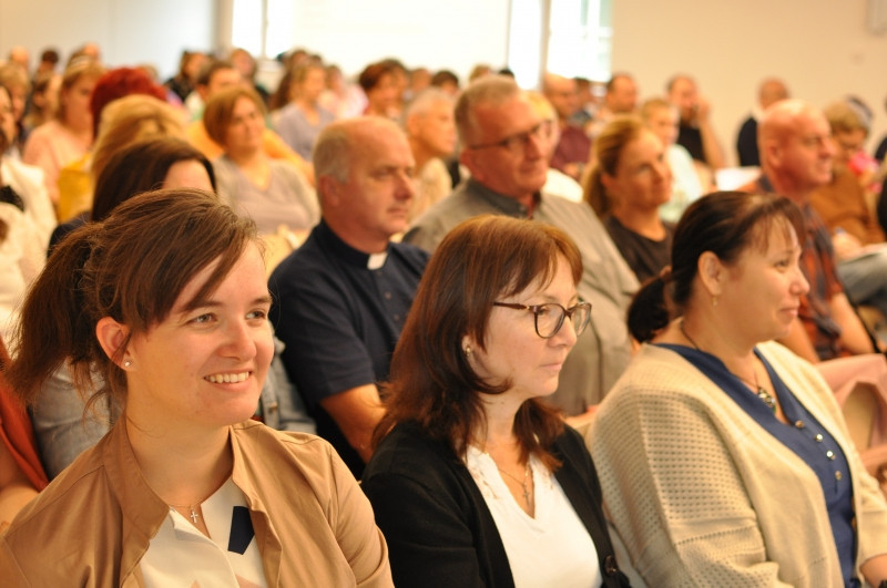 Gloviczki Zoltán, az Apor Vilmos Katolikus Főiskola (AVKF) rektora Napjaink pedagógiai kihívásai címmel tartott előadást, mely láthatóan felkeltette a jelenlévők érdeklődését. Elsősorban arról beszélt, mit is jelent tanárnak lenni, mire van egy pedagógusnak hivatása. „Miért van szükség pedagógusokra? Hogy segítsünk a szülőknek életképes és boldog felnőtteket nevelni a gyerekeikből. Nem arra, hogy tudjon valamit a gyerek. Nem arra, hogy elérjen valamit. Szembesülnünk kell azzal, hogy hiába van tananyag és tankönyv,