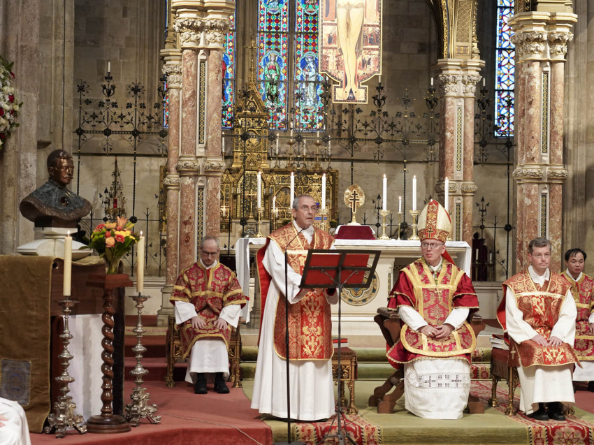 Útjának első állomása a bécsi Stephansdom volt, ahol több száz magyarországi és Kárpát-medencei zarándok ünnepelte Szent István királyt augusztus 24-én, így első királyunk bécsi ereklyéje mellett utolsó apostoli királyunk hermája is jelen volt.