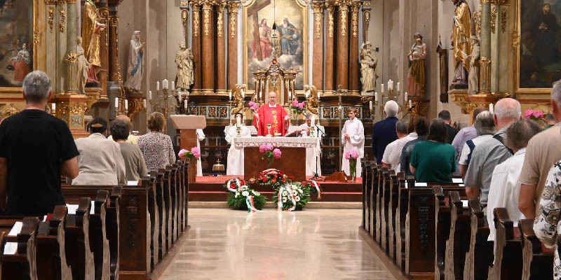 A megemlékezőket Kováts Andrea, a Keresztény Értelmiségiek Szövetségének tagja köszöntötte, majd szentmise következett, amelyen a vértanú szentté avatásáért imádkoztak. A szentmisét követően a templom előtti téren mécsesgyújtás után megkoszorúzták a mártírhalált halt szerzetes szobrát.