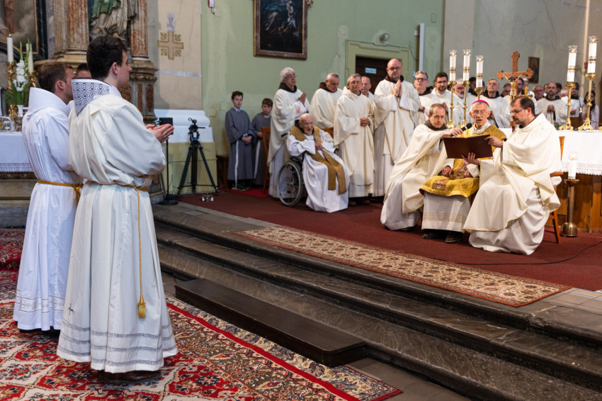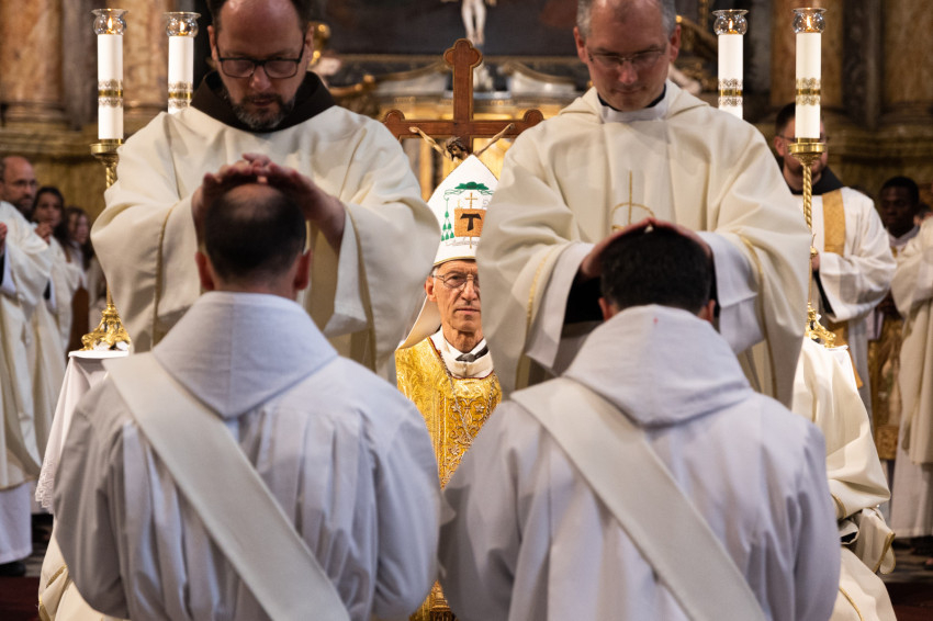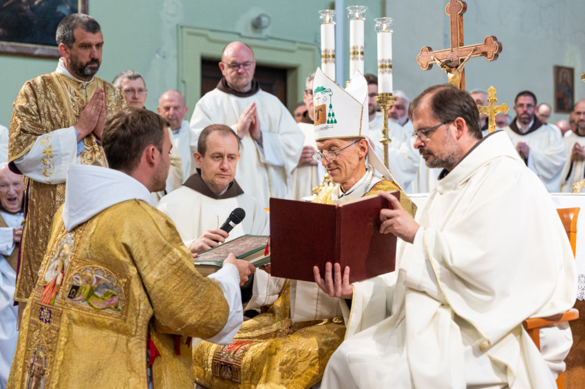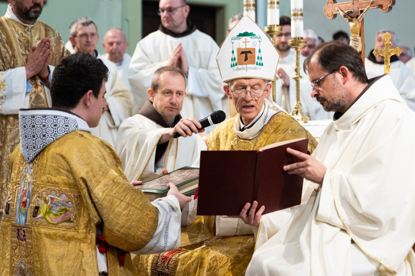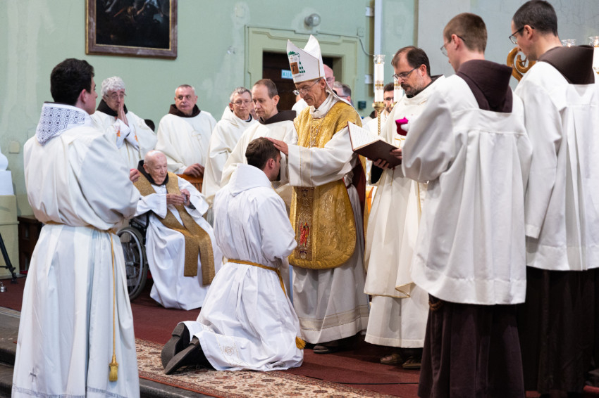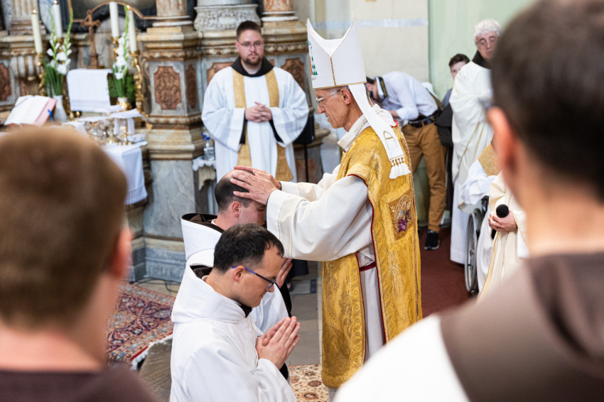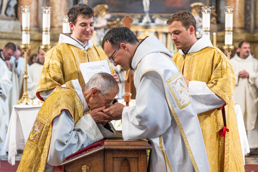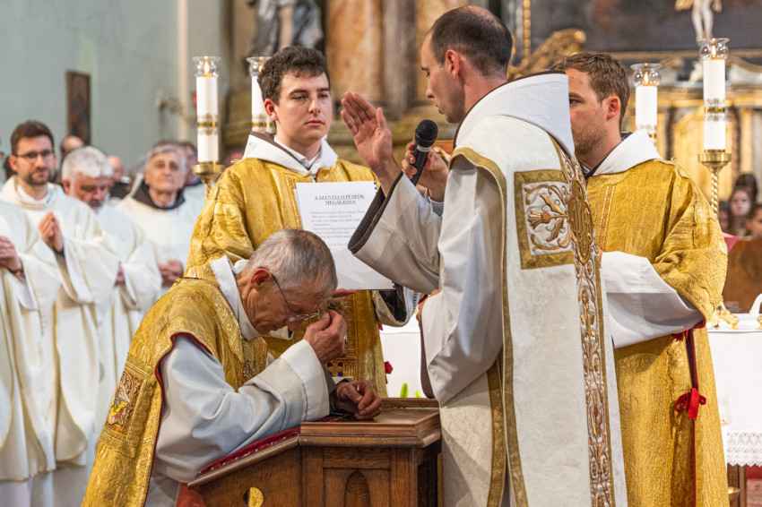 Ő a végtelen magasságból ereszkedett a szegények közé, a legegyszerűbb munkásemberek közé, a perifériára, és nekik mondja el az örömhírét először. Ehhez az Úr Jézushoz kapcsolódjatok, különösen a krízisek idején, és tekintsetek a tanúságtevőkre” – biztatta őket a püspök, felidézve Nick Vujicic tanúságtételét. Buzdította a szentelendőket arra, hogy hirdessék, boldogok, akik lemondanak a gazdagságról, mert megtalálták az igazi gazdagságot; akik a tisztaságot boldogítónak élik meg, mert felismerték, ki az igazi szeretője az embernek; és nem muszájból engedelmeskednek, hanem mert felismerték, mi a jó, és annak engednek. „Jézus munkájából, művéből részesedjetek, az a legnagyobb kitüntetés az ember számára” – hangsúlyozta beszéde végén.