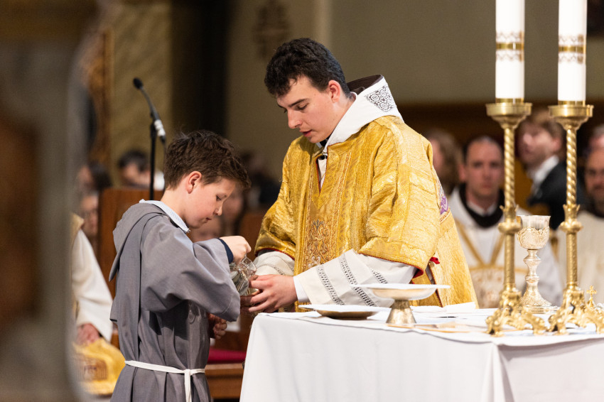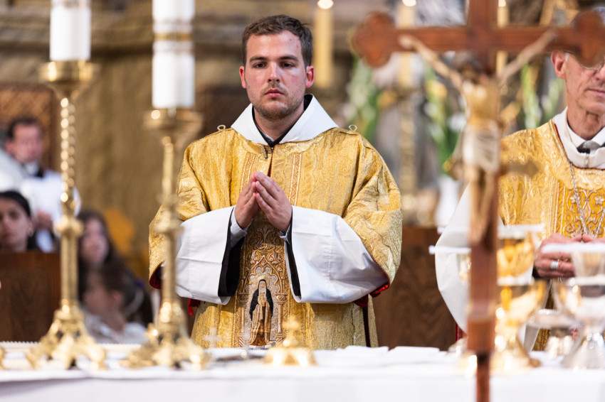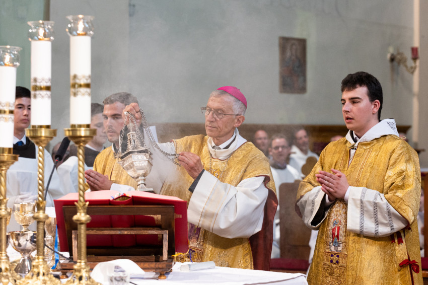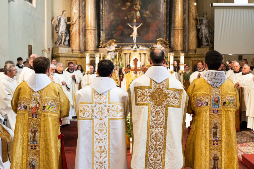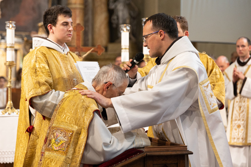 Az új áldozópapok egyesével megáldották a püspököt, kezüket a vállára téve, majd a felszentelt diakónusokkal együtt ők is ünnepélyes áldást kaptak tőle, amit meghajolva fogadtak az oltár előtt.